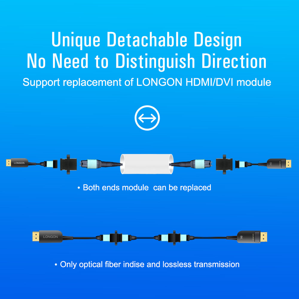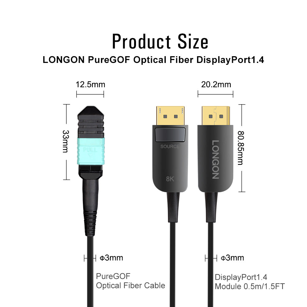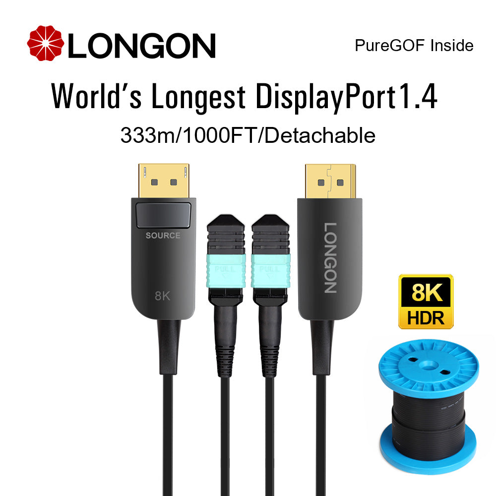 LONGON Detachable DP1.4 Displayport Cable Pure Active Optical Fiber (AOC) Cable Support 8K@60Hz 4K@144Hz 2K@240Hz 1080P@480Hz For VR AR Medical Public Security Audiovisual Engineering System RTX3080 3090 Monitor 10m 15m 20m 100m 200m 300m 333m