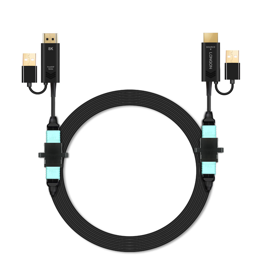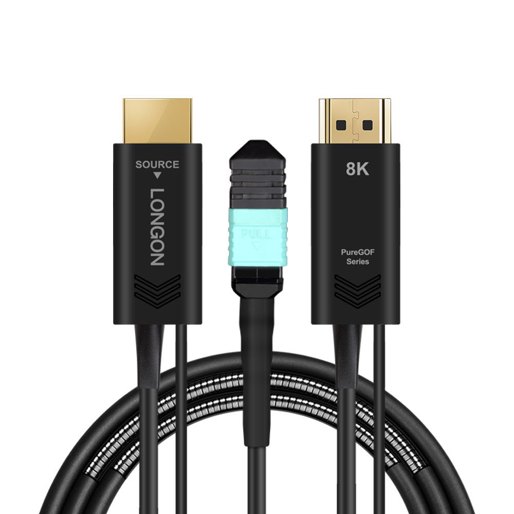 LONGON Armoed Pure Optical Fiber HDMI2.1 Detachable Cable, which is different from the conventional optical fiber HDMI cable, it has innovative performance such as non-directional installation, detachable conversion head, non-destructive and non-radiation, etc.