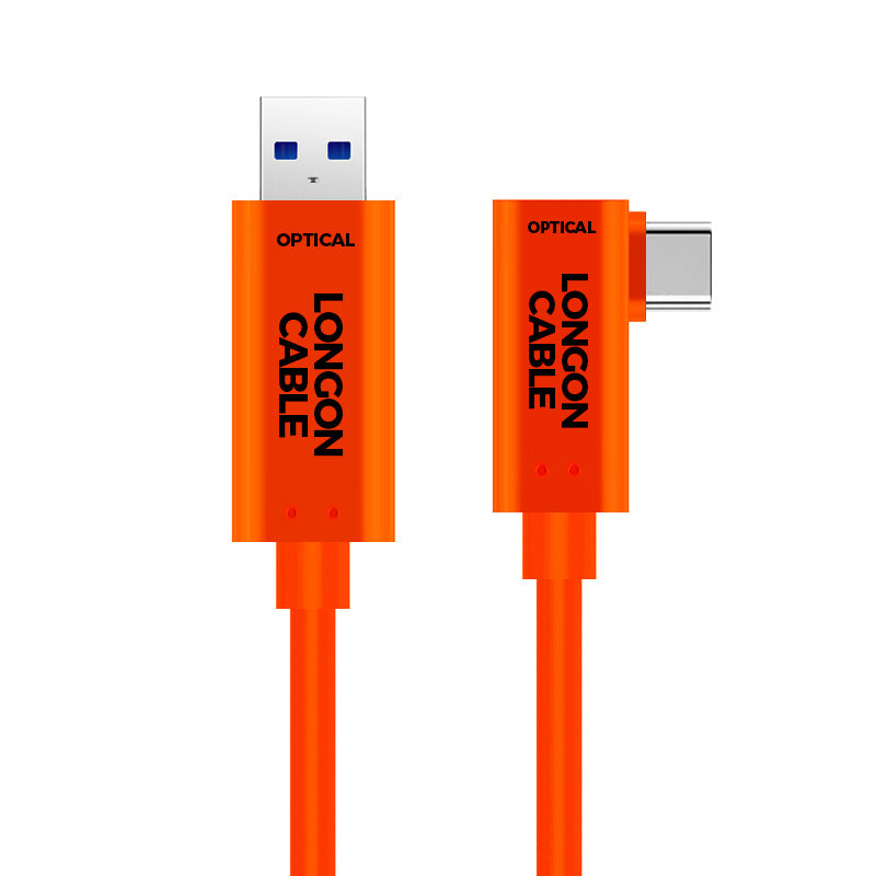 LONGON CABLE AOC Optical Fiber USB3.1 Type A to C 90 Degree Angle Cable Orange 10Gbps For SONY CANON NIKON Kinect Intel Realsense Camera Link Cable Meta Oculus VR Link Cable LG013